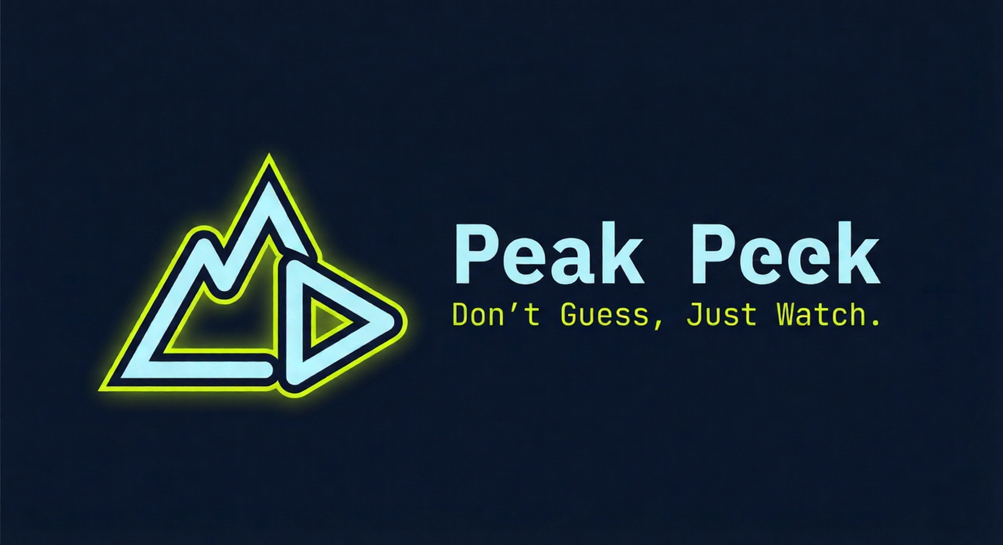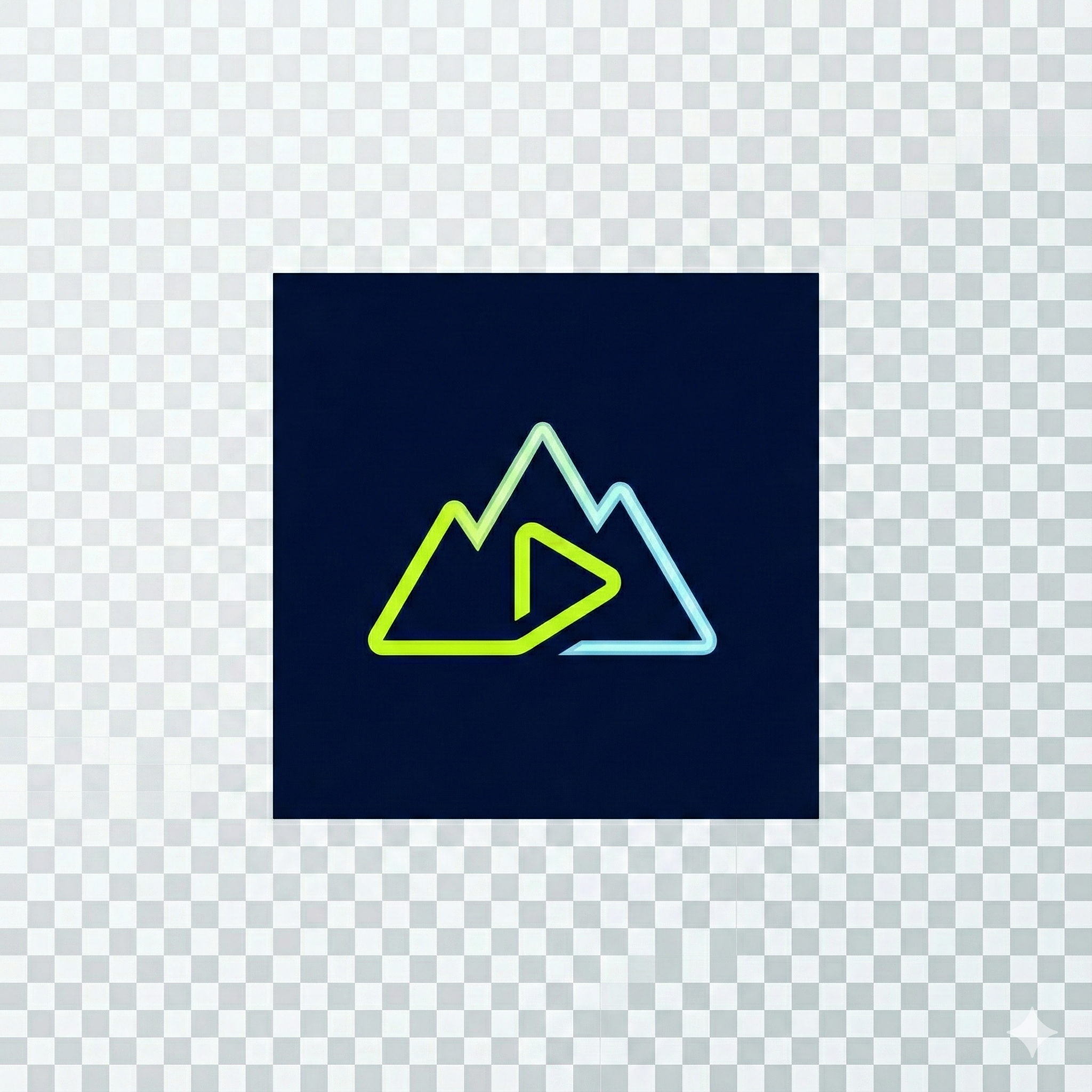 로고 제작: Looka 또는(https://brandmark.io)에 접속하여 "Mountain", "Eye", "Play button" 키워드로 로고를 생성해 보세요. 컬러는 위에서 제안한 'Neon Lime'과 'Navy'를 적용하세요.