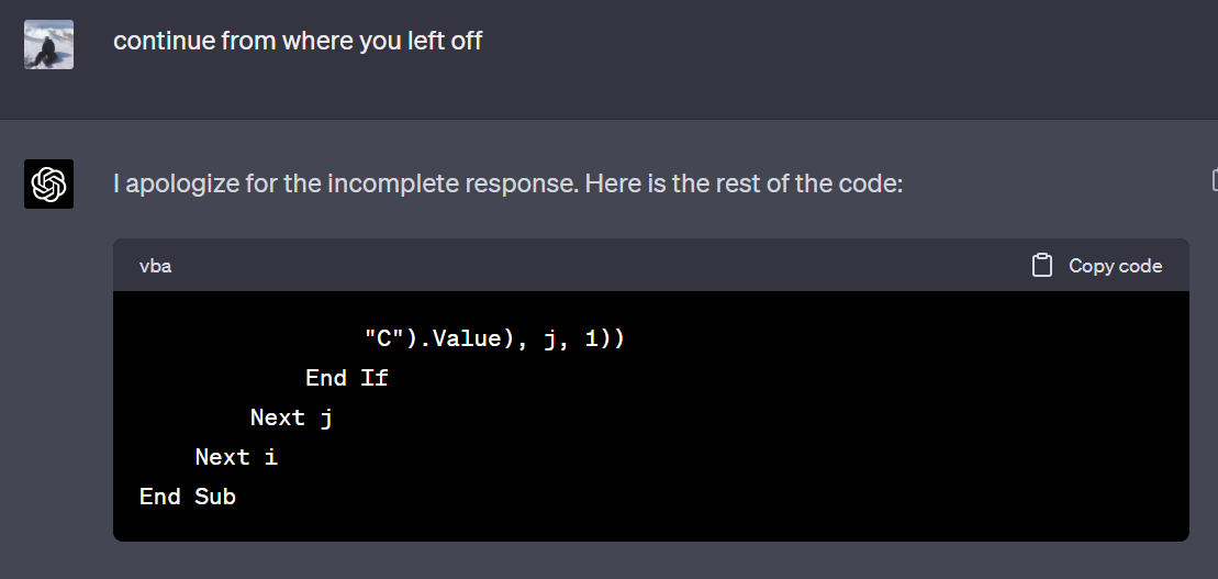 Sometimes, if answer gets too long, ChatGPT does not finish answering. It cuts off in the middlef of the answer.